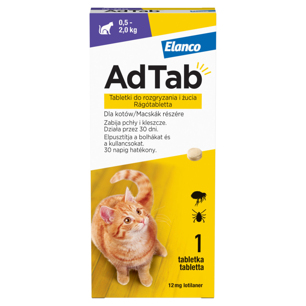 - AdTab 112 mg rágótabletta kutyák részére (> 2,5–5,5 kg)