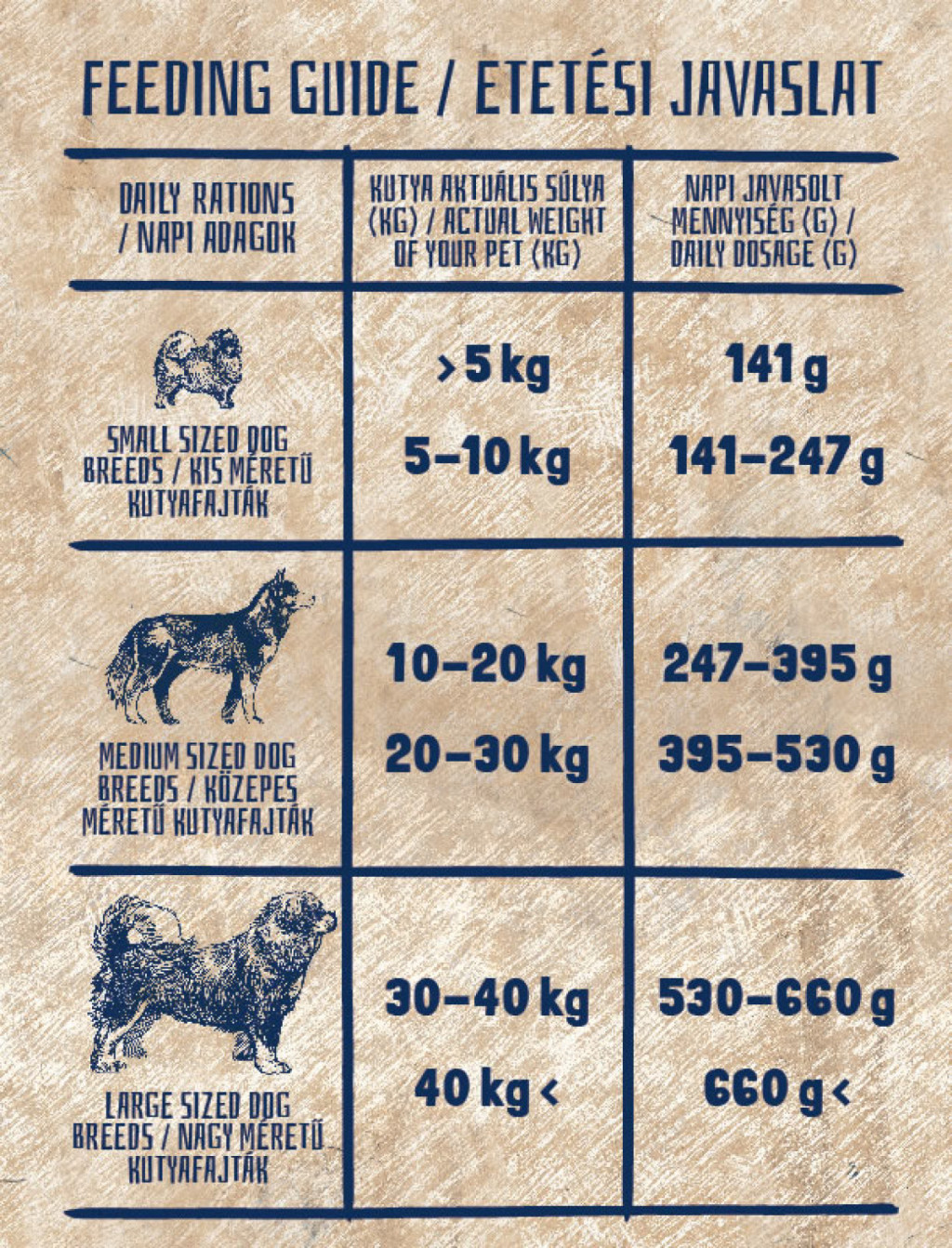 Összetétel: hús és állati származékok (Sertéshúsliszt min.35%), gabonafélék (korpa, búza, kukorica), állati zsír, cirok, lucerna, rizs, spenót(0,5%), F.O.S..