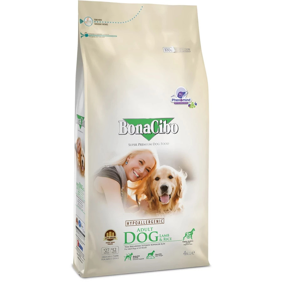 A BonaCibo Adult Dog Lamb & Rice vitaminokban és ásványi-anyagokban gazdag tápláléka a kutyáknak, melyben az Omega-6 és Omega-3 zsírsavak megemelt mennyisége segíti az egészséges bőr és szőrzet fenntartását.