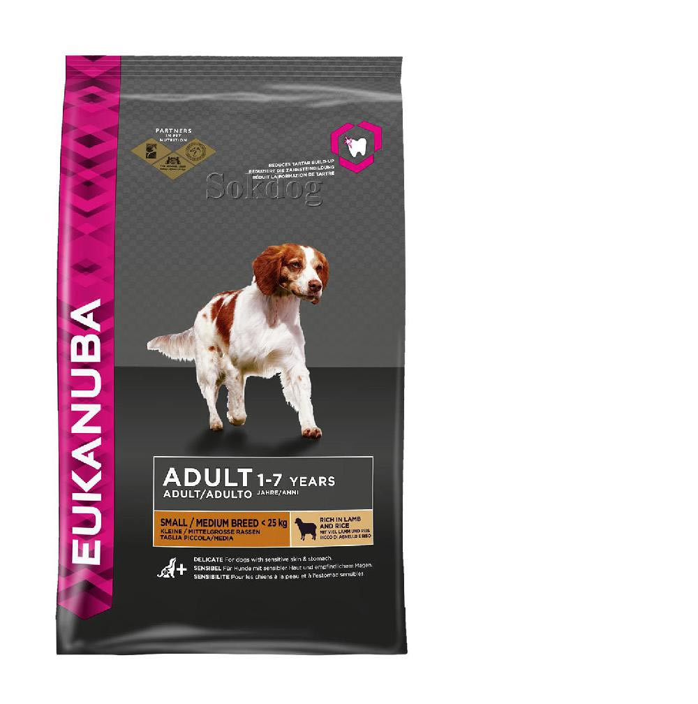 szárított csirke- és pulykahús, bárány (>14%), rizs (>14%), kukorica, cirok, árpa, tojáspor, állati zsiradék, szárított cukorrépapép (>2,5%), csirke belsőség, halliszt, kálium-klorid, nátrium-klorid, kalcium-karbonát, nátrium-hexametafoszfátként, halolaj, frukto-oligoszacharid (0,15%).