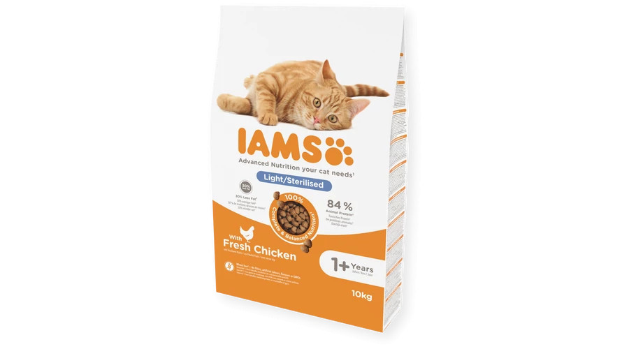 IAMS for Vitality Sterilised Light in Fat zsírszegény macskatáp friss csirkehússal.