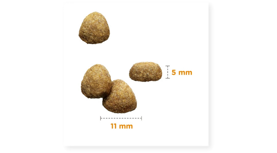 Összetétel: szárított csirke- és pulykahús 36% (csirke 22%, a taurin természetes forrása), kukorica, kukoricapép, cirok, friss csirkehús (4,1%), árpa, szárított cukorrépapép (2,5%), sertészsír, csirke szaftos lében, szárított sörélesztő, frukto-oligoszacharidok (0,69%), kálium-klorid, halolaj.