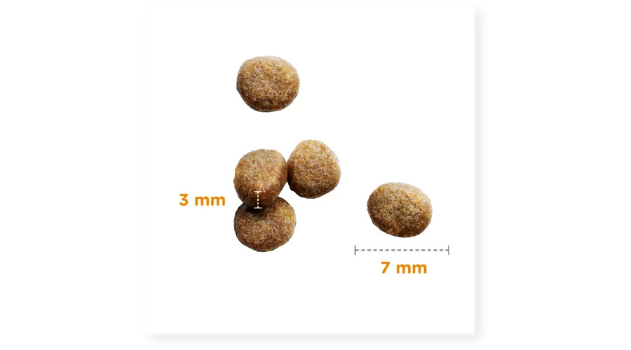 Összetétel: szárított csirke- és pulykahús 43% (csirke 26%, a taurin természetes forrása), kukorica, sertészsír, friss csirkehús (4,1%), rizs, szárított cukorrépapép (2,4%), csirke szaftos lében, szárított egész tojás, halliszt, frukto-oligoszacharidok (0,70%), halolaj, kálium-klorid, szárított sörélesztő.