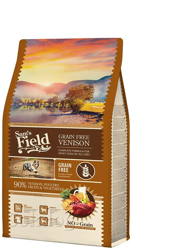 A Sam's Field Adult Grain Free Venison egy teljesértékű állateledel felnőtt kutyák számára.