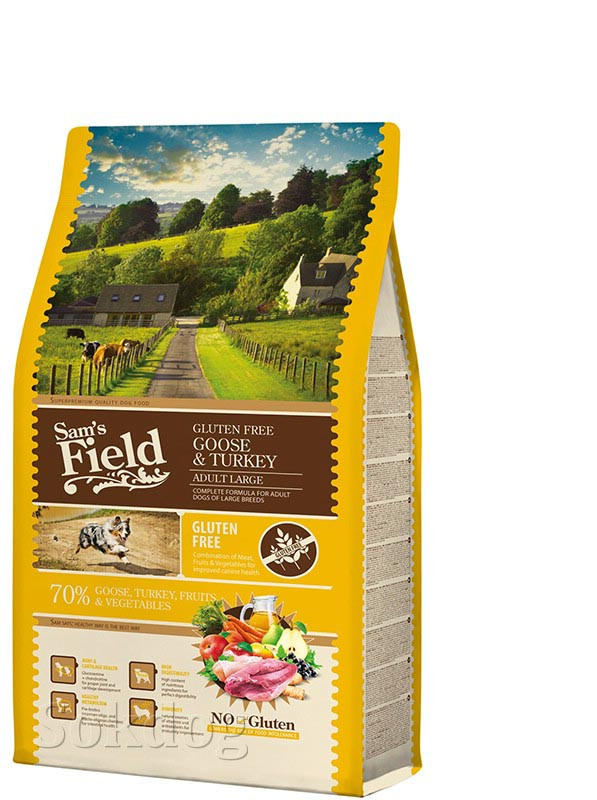 A Sam's Field Adult Gluten Free Goose & Turkey - Large egy teljesértékű állateledel nagytestű, felnőtt kutyák számára.