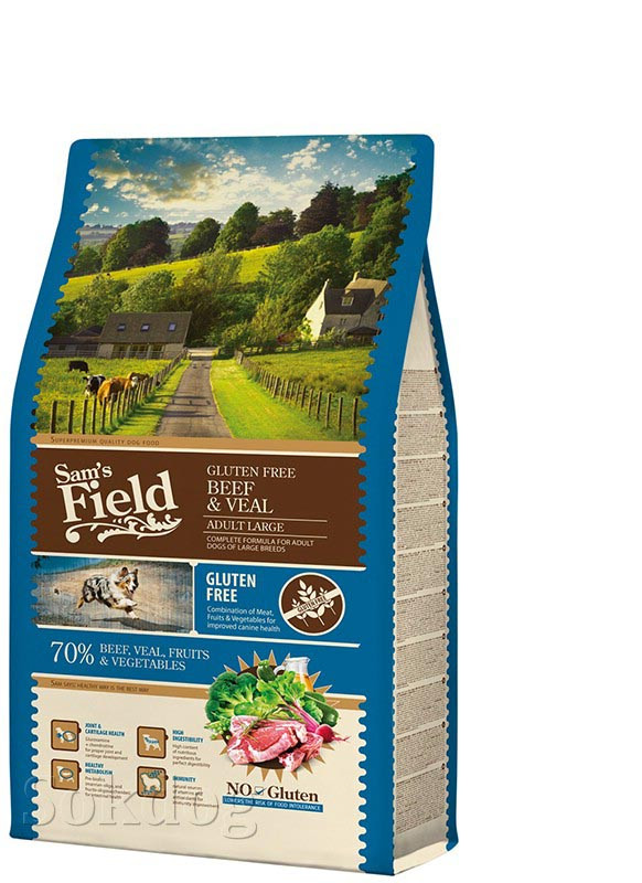 A Sam's Field Adult Gluten Free Beef & Veal - Large egy teljesértékű állateledel nagytestű, felnőtt kutyák számára.