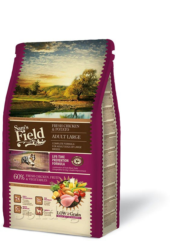 A Sam's Field Fresh Chicken & Potato Adult Large egy teljesértékű állateledel nagytestű, felnőtt kutyák számára.