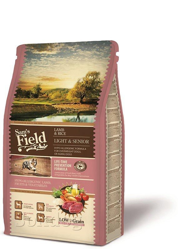 A Sam's Field Lamb & Rice Light & Senior egy teljesértékű álleteledel túlsúlyos, idős kutyák számára.