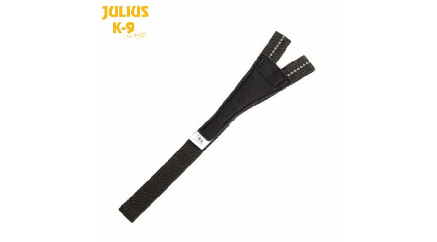 Egy könnyen le-, és felszerelhető,  a  kutyahám mellövét és mellkas alatti övét, továbbá, ezzel egyidejűleg, szükség esetén a kutyanyakörvet összekötő, elasztikus, állítható méretű  biztosító heveder, amely a mellövet a legszélsőségesebb terhelés mellett is a kutya mellkasán a megfelelő irányban tartja.  Az „I”-biztosító öv a kutyahám mellövének teljes kibujtatása nélkül felszerelhető a mellövre.  A nyakörvhez való hozzárögzítés hétköznapi felhasználás keretein belül nem szükséges, de a kutya autóban való rögzítésénél ajánlott.Megakadályozza, hogy a mozgékony kutyák a kutyahámból előre irányban kibújjanak.        Figyelem! A termék csak a Julius-K9 által bevezetett, tépőzárral nyitható, mellövvel ellátott kutyahámon és gyorskioldó csatos kutyanyakörvön csatlakoztatható.